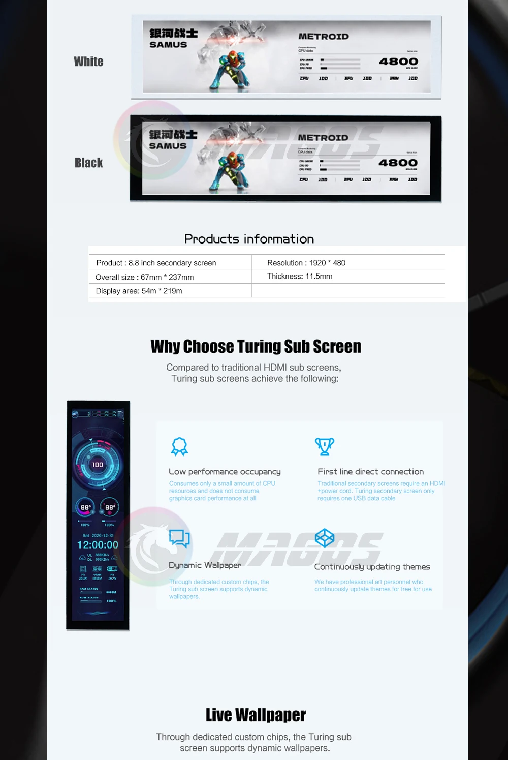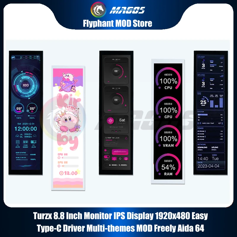 Comprar Pantalla de 8,8 pulgadas, 1920x480 PC, temas de bricolaje, Monitor de estado de trabajo, USB tipo C, controlador de Software, AIDA 64