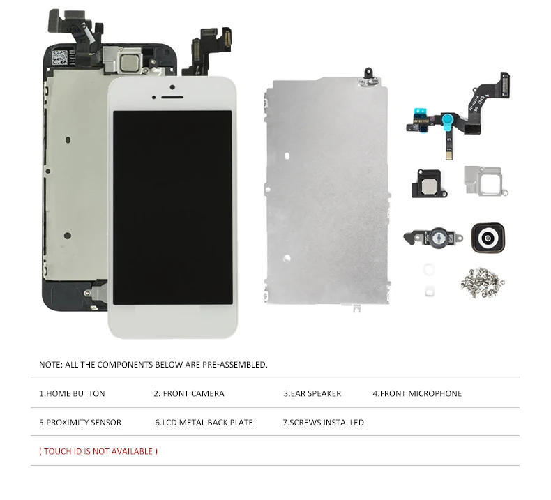 La Pantalla de ensamblaje completo no tendrá ID táctil, porque solo el botón de inicio original puede ser reconocido por su teléfono, por lo que puede transferir su botón de inicio original a una nueva pantalla, luego estará bien, no aceptamos reembolsos o devoluciones debido a las huellas dactilares.