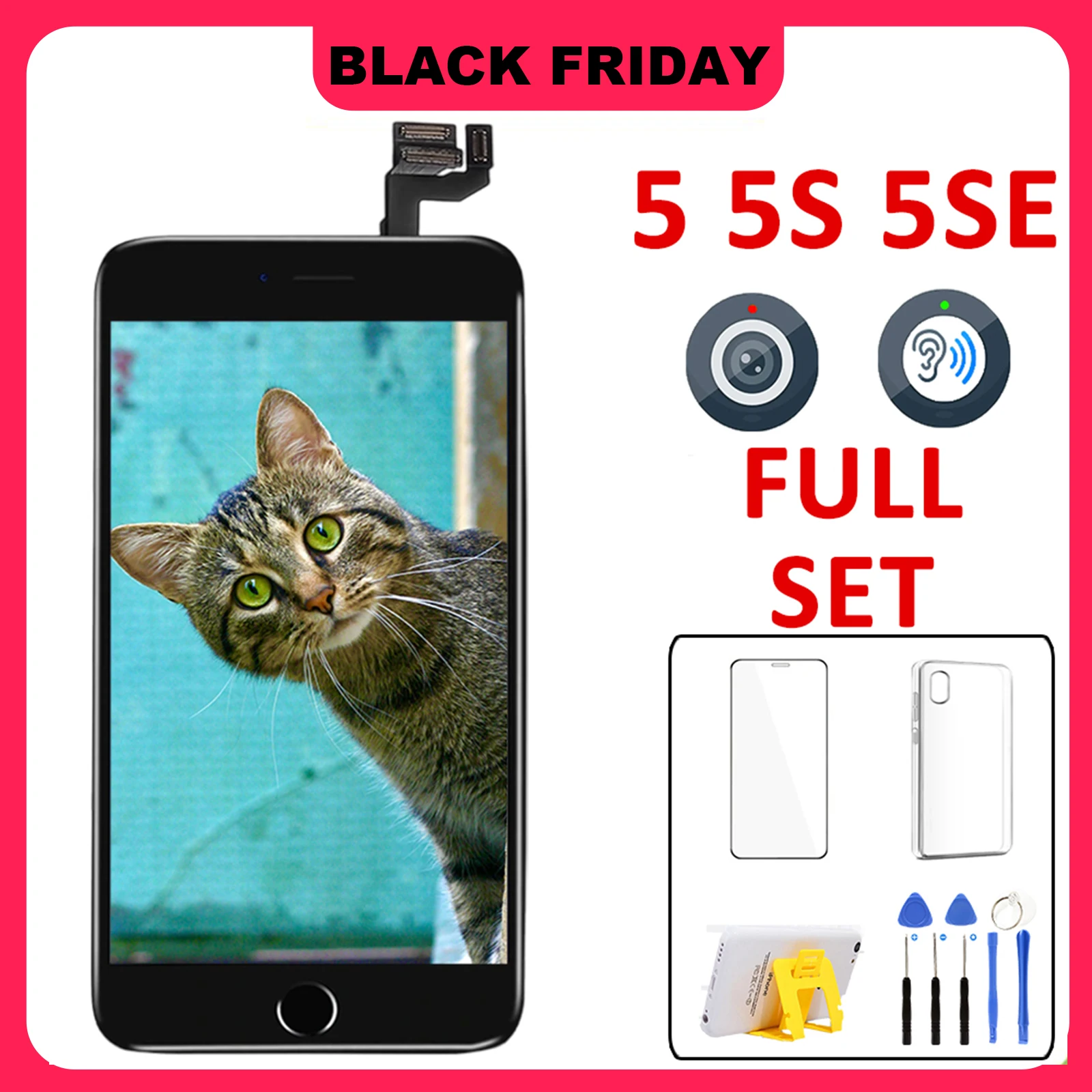 Comprar Pantalla AAA para iPhone 5, 5C, 5S, SE 2016, SE1, conjunto completo LCD, reemplazo de digitalizador táctil, montaje completo + cámara frontal