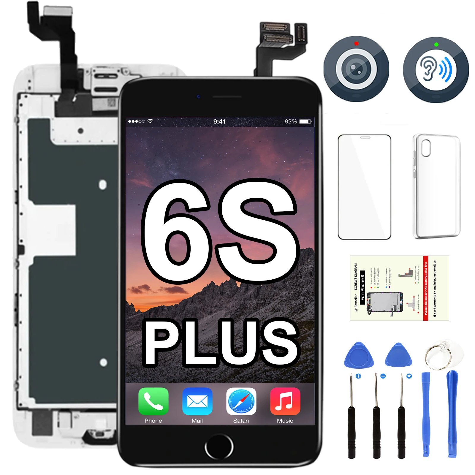 Pantalla completa AAA para iPhone 6S Plus 6SP, repuesto de pantalla LCD de 5,5 pulgadas, Digitalizador táctil blanco y negro, montaje completo
