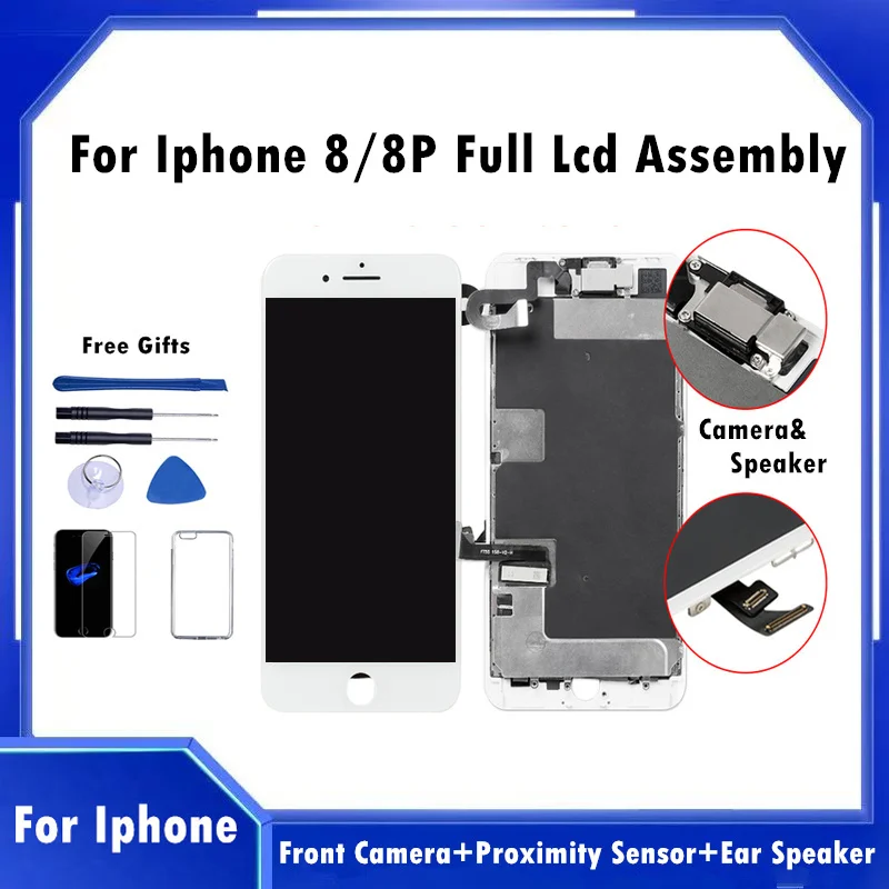 Pantalla LCD completa sin píxeles muertos probada 100% para iPhone 8 Plus, montaje LCD completo, reemplazo de digitalizador con 3D Touch