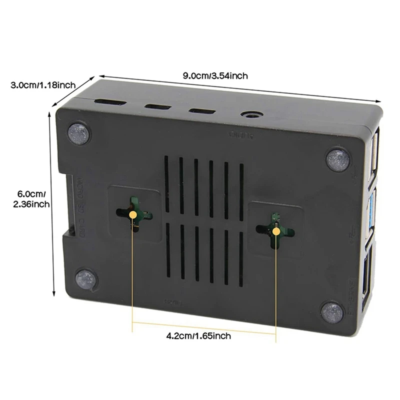 La funda se puede utilizar como funda para Raspberry Pi con mini ventilador de refrigeración y pantalla de 3,5 pulgadas instalada. Tenga en cuenta que la carcasa ABS está especialmente diseñada solo para Raspberry Pi 4 Modelo B.