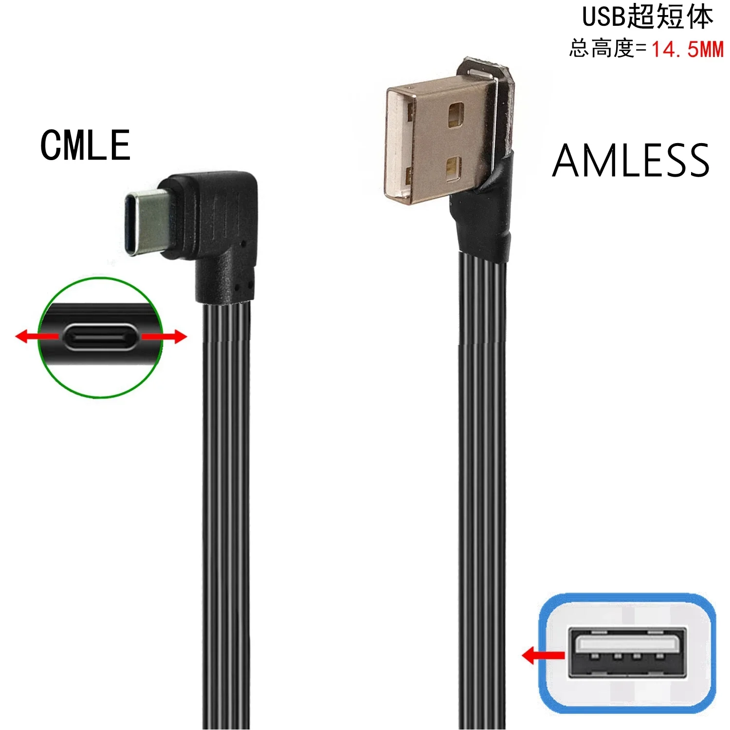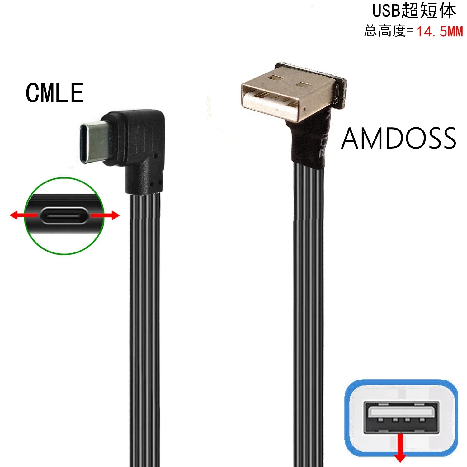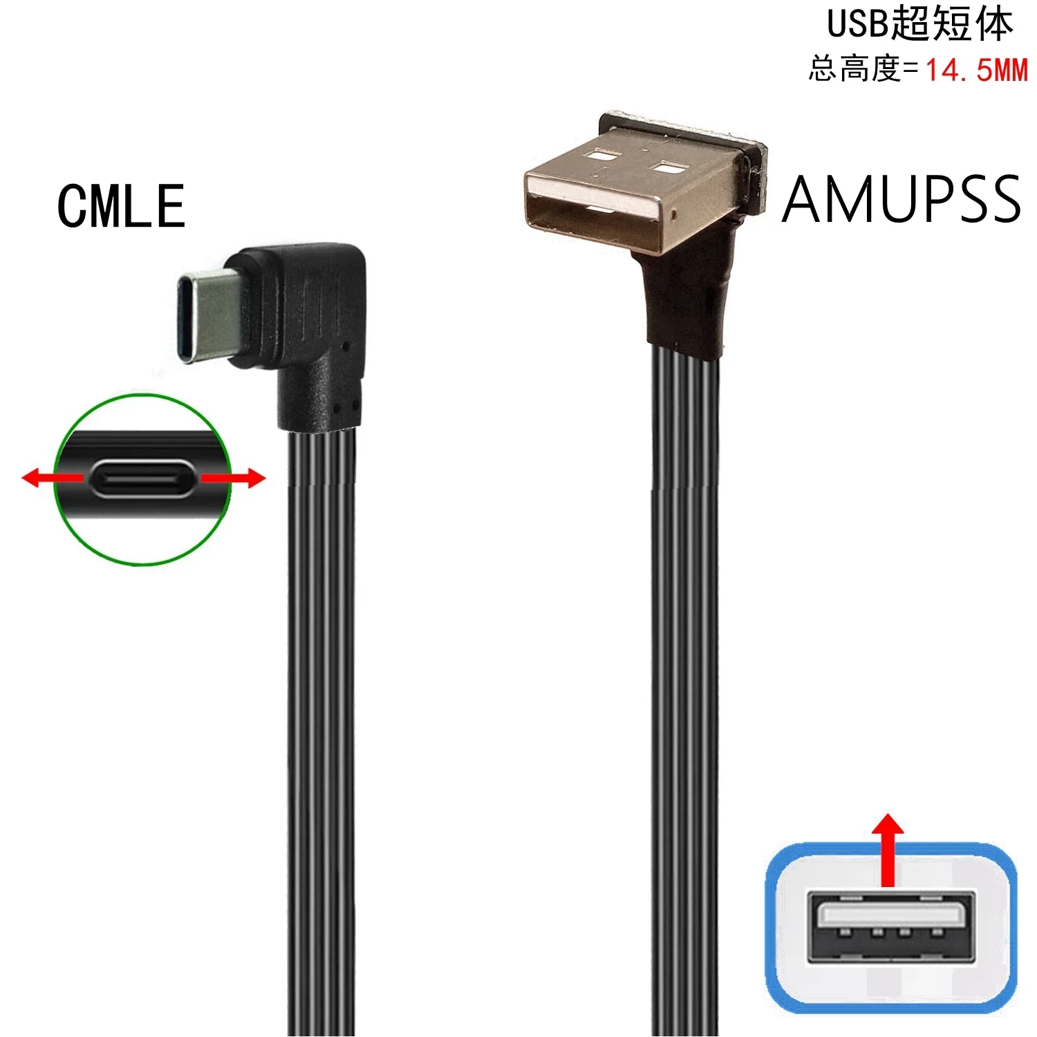 Pantalla de Control Led para coche de 0,3 M, codo ultracorto USB adecuado para Lexus es, Cable de datos de codo ultraplano, Cable plano oculto TypeC 0,1 M