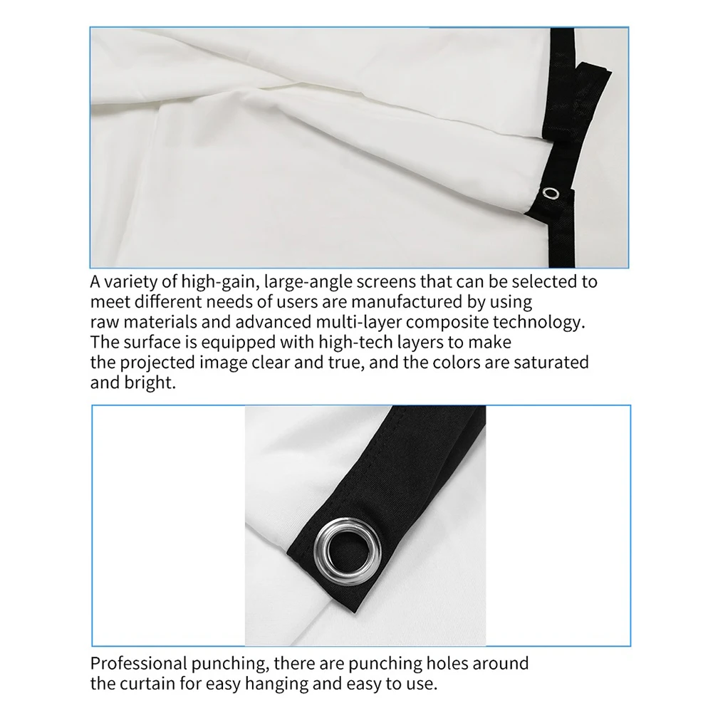 Comprar Pantalla de cortina Simple para proyector, pantalla de proyección 3D HD portátil para cine en casa, oficina al aire libre, 16:9, 60, 72, 84, 100, 120, 150 pulgadas