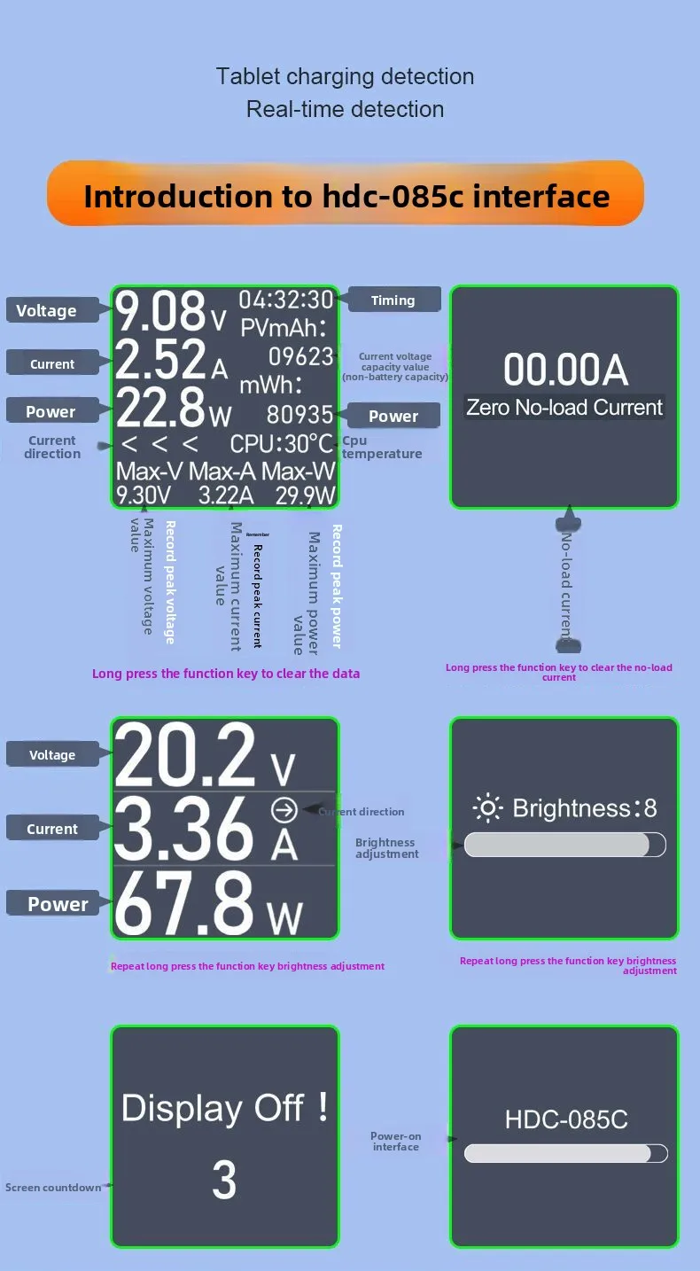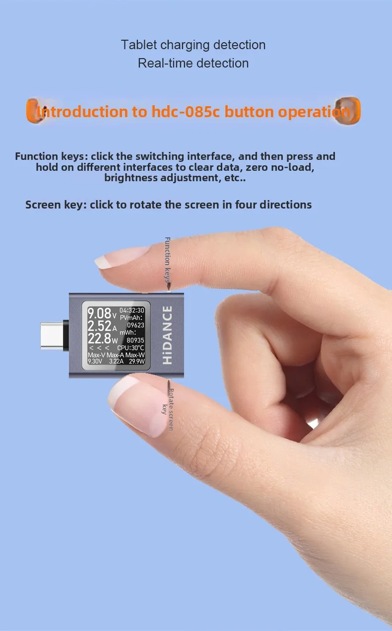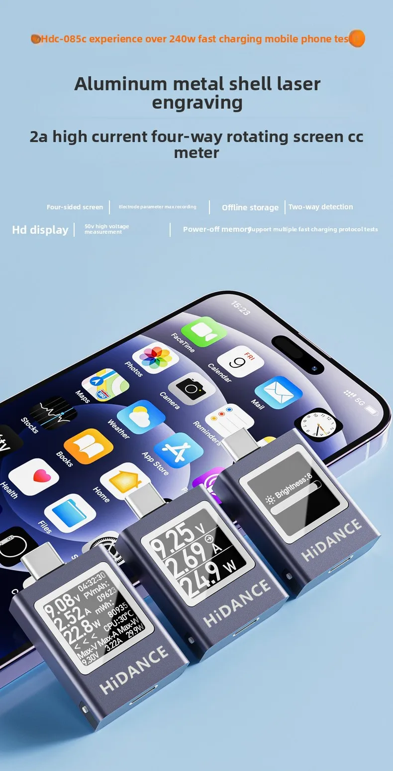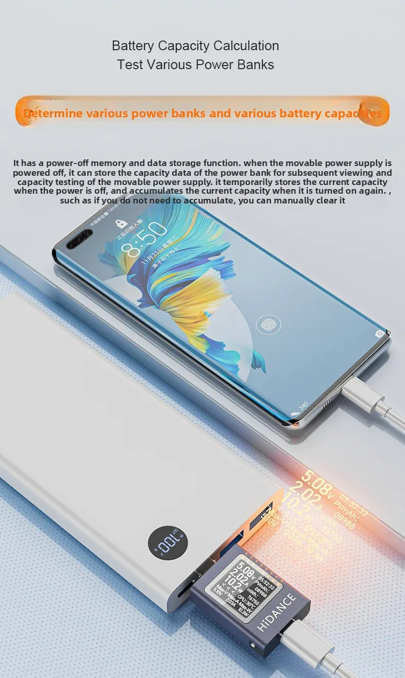 Pantalla Digital multifunción tipo C, amperímetro de voltaje CC, medidor de potencia, probador de carga de teléfono móvil, prueba de batería de PC