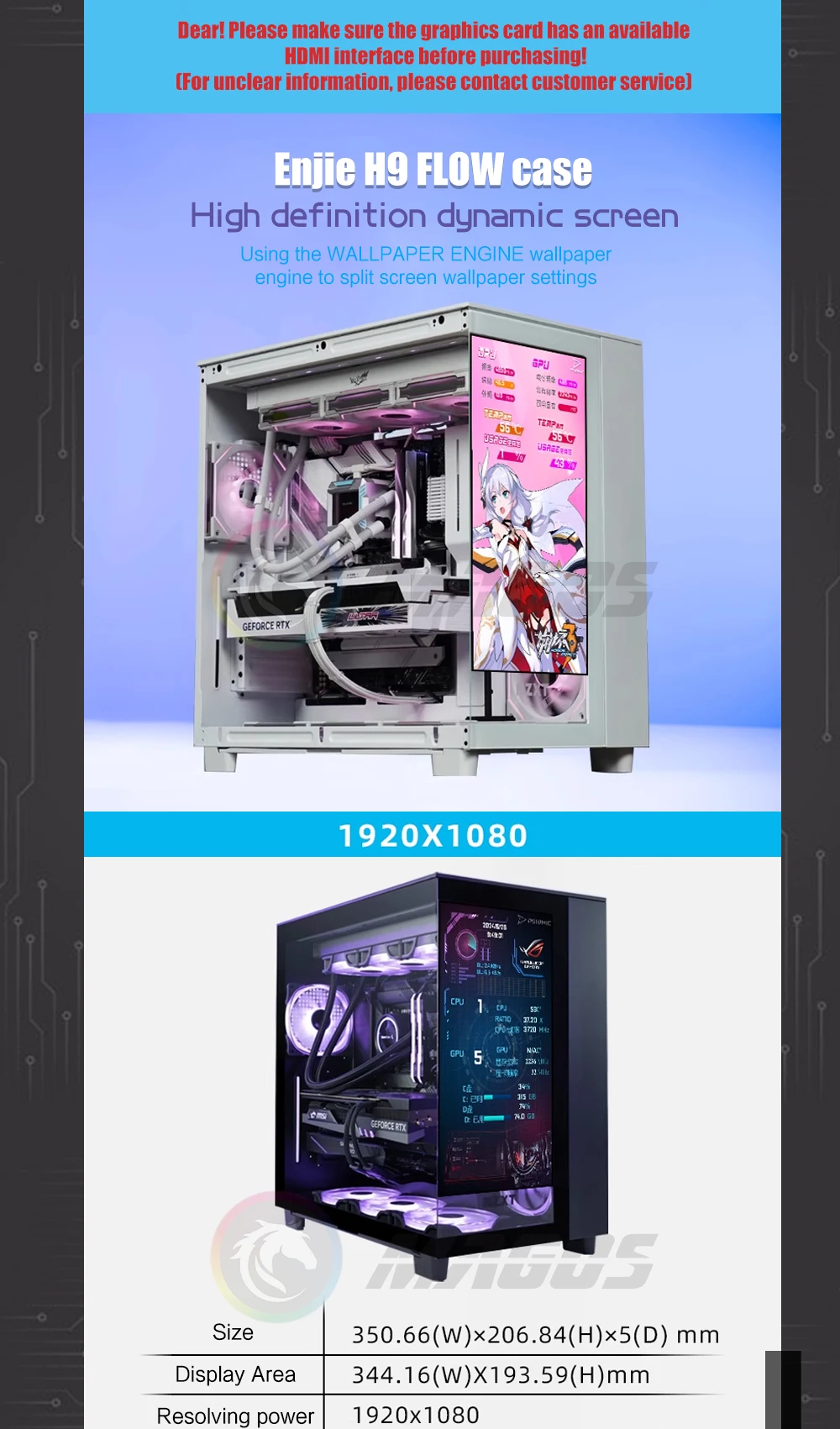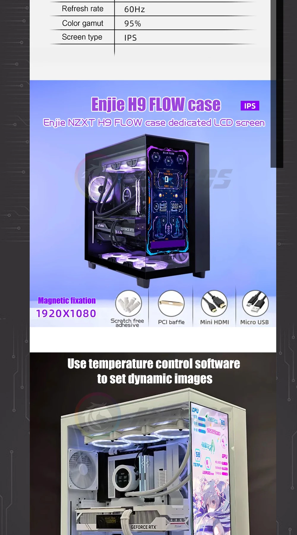 Pantalla de expansión de ordenador para NZXT H9, pantalla de Panel lateral de flujo, monitoreo dinámico DIY dedicado, soporte LCD, Control de PC AIDA64