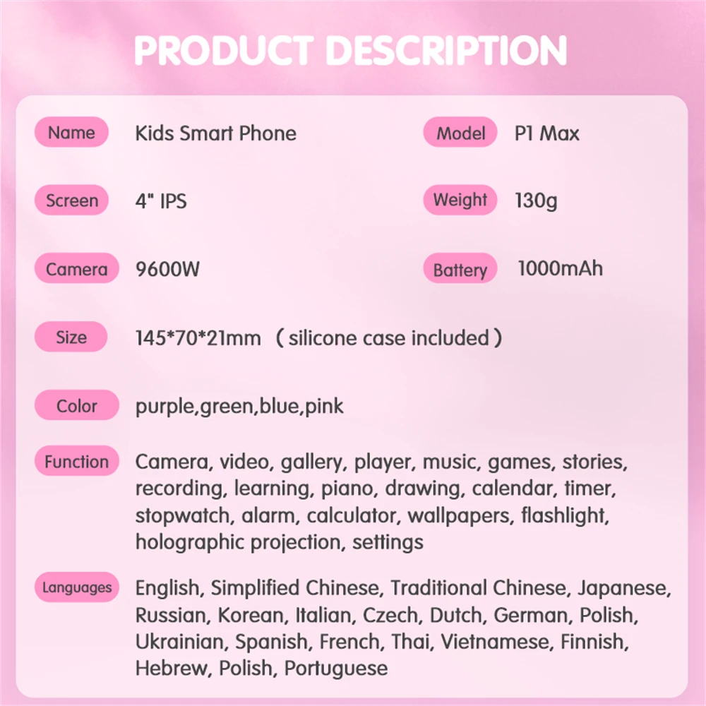 KGG P1 Max 32G teléfono inteligente para niños Mini teléfono IPS de 4 pulgadas juego de rompecabezas reproductor de música grabación de vídeo juguetes educativos para niños con historias.