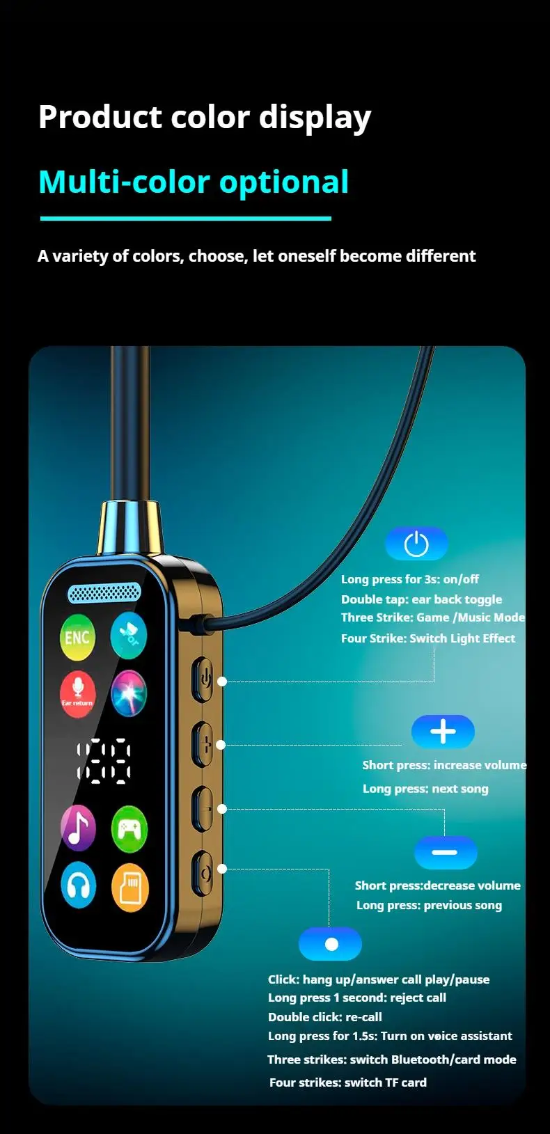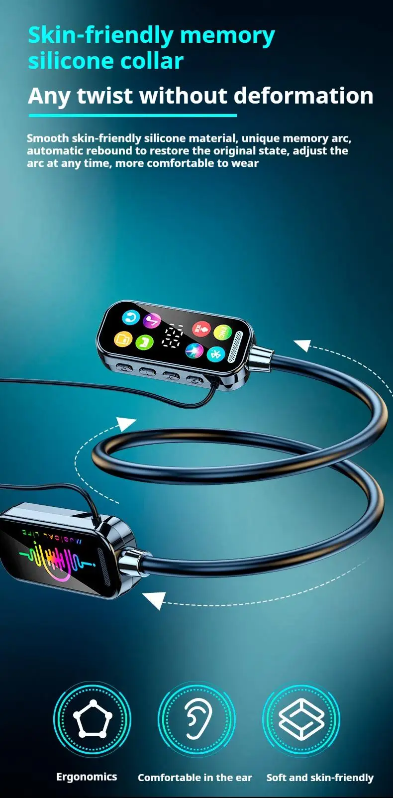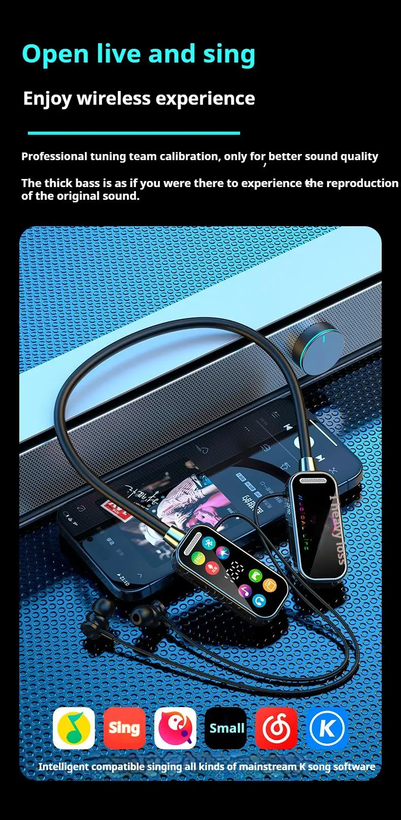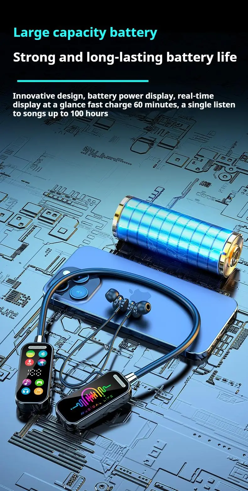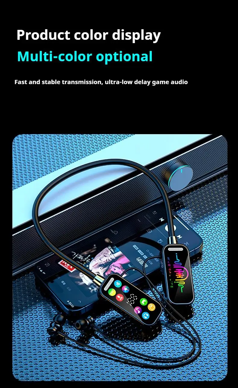 NEWMSNR 50H tiempo de reproducción sonido HiFi auriculares Bluetooth pantalla LED auriculares inalámbricos deportes Gamer auriculares para colgar en el cuello