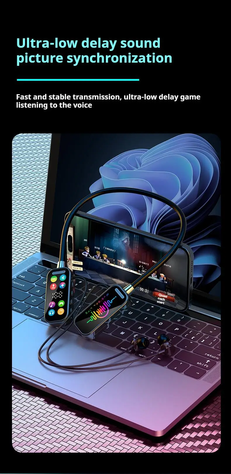 Comprar Pantalla HD 50H tiempo de reproducción auriculares con sonido estéreo auriculares magnéticos Bluetooth auriculares inalámbricos deportes juegos auriculares colgantes para el cuello