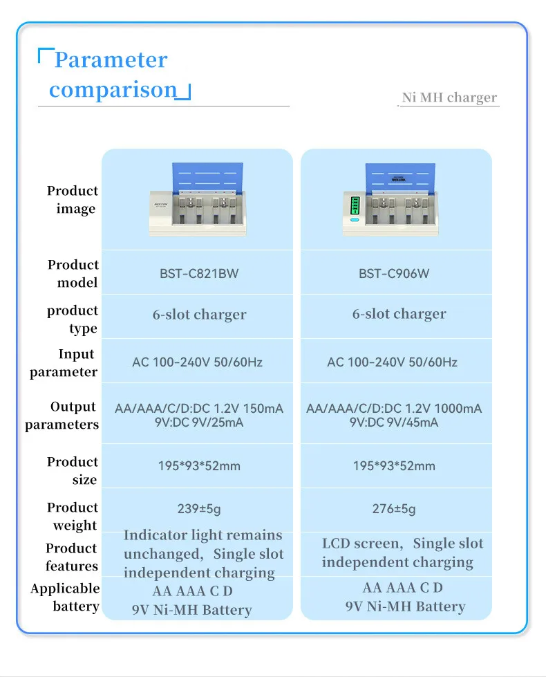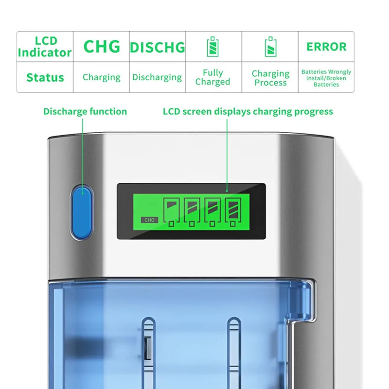 5. Al final del proceso de carga, el chip de microordenador incorporado convierte el modo de carga rápida en carga lenta, asegurando que las baterías estén completamente cargadas y evitando la sobrecarga.