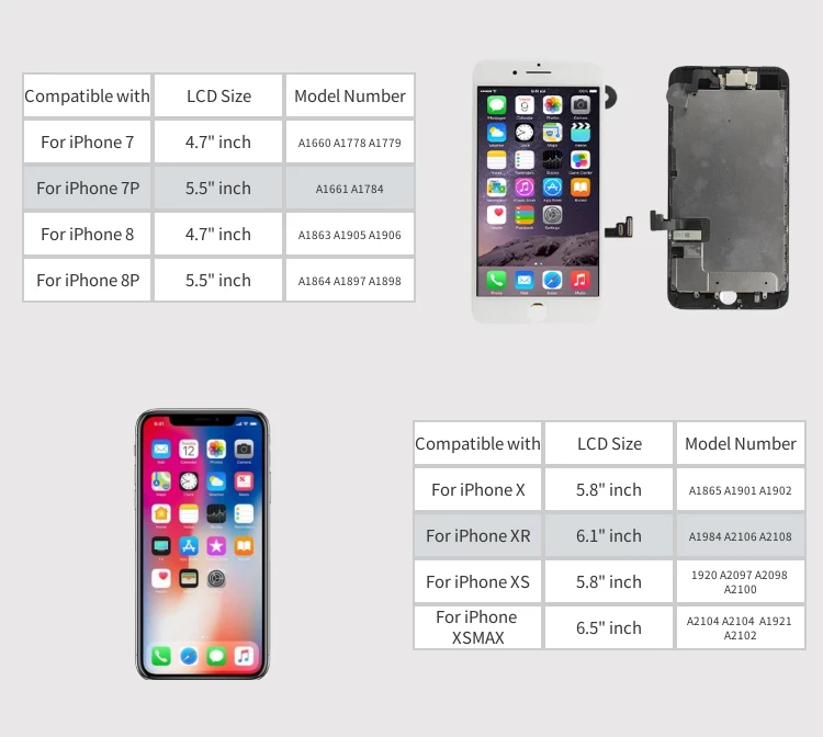 3. Replacement part for iPhone 7/7Plus/8/8Plus. It is used for replace your wrong, damaged, cracked, no touch LCD display