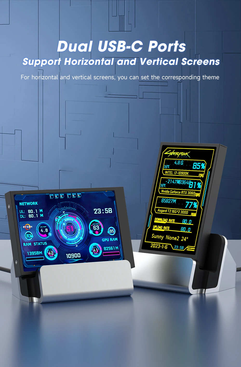 Gadgets USB de 3,5 pulgadas, ordenador para juegos DIY de 5 pulgadas, Mini pantalla IPS USB AIDA64 PC CPU RAM HDD, Monitor de datos, pantalla de temperatura del ordenador, subpantalla tipo C