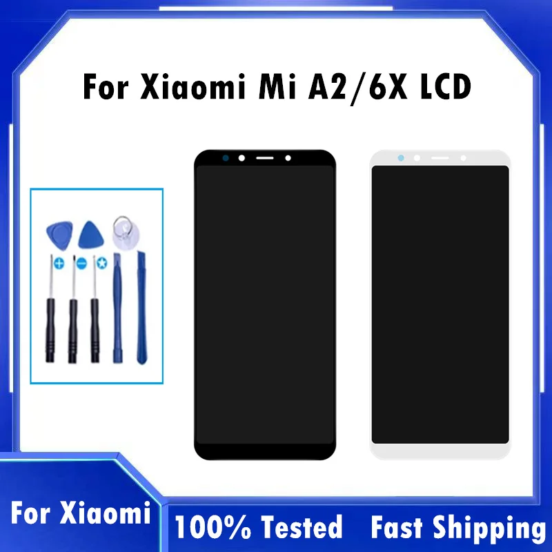 Pantalla LCD de 100% pulgadas para Xiaomi Mi A2, montaje de digitalizador táctil con marco para Xiaomi Mi A2 6X LCD, 5,99 probado