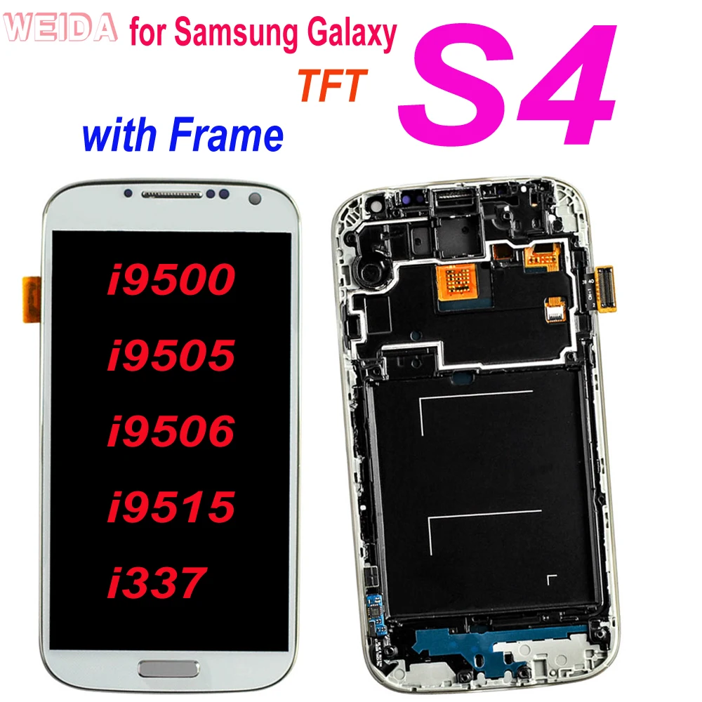 Comprar Pantalla LCD de 100% pulgadas para Samsung Galaxy S4, montaje de digitalizador con pantalla táctil con reemplazo de marco, 5,0 probada, i9500, i9505, i9506