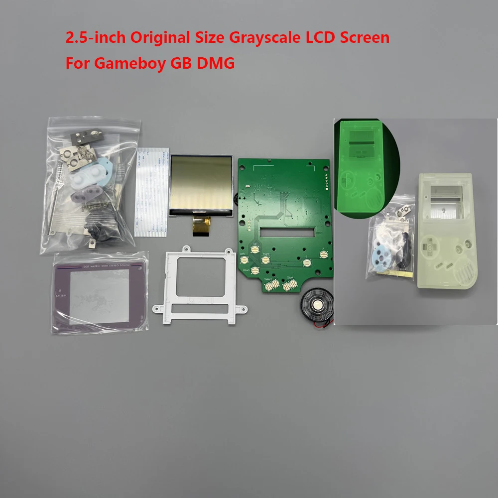 Comprar Pantalla LCD de 2,5 pulgadas en escala de grises para consola de juegos Gameboy GB DMG, carcasa sin cortes, sin soldadura, pantalla LCD de tamaño Original, punto a punto