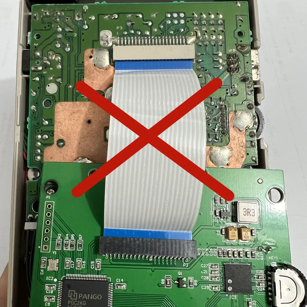 No inserte el mismo lado del cable en ambos extremos en el soporte del cable.Como se muestra a continuación.¡Insertar un cable inverso como este quemará el chip principal de la pantalla LCD!!