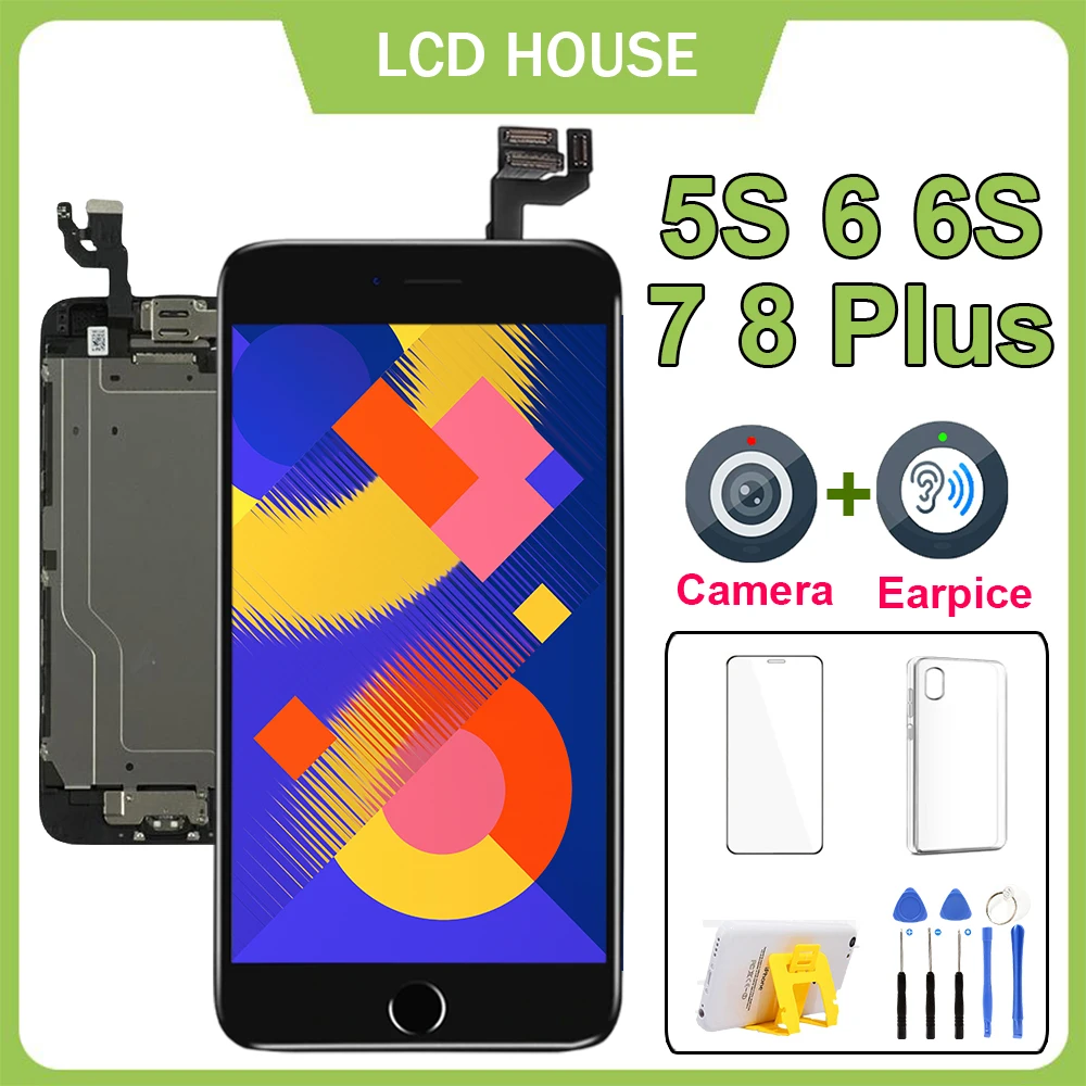 Comprar Pantalla LCD AAA para iPhone 5, 5S, 5SE, 6, 6S, 7, 8 Plus, conjunto completo de digitalizador táctil, repuesto completo y cámara frontal