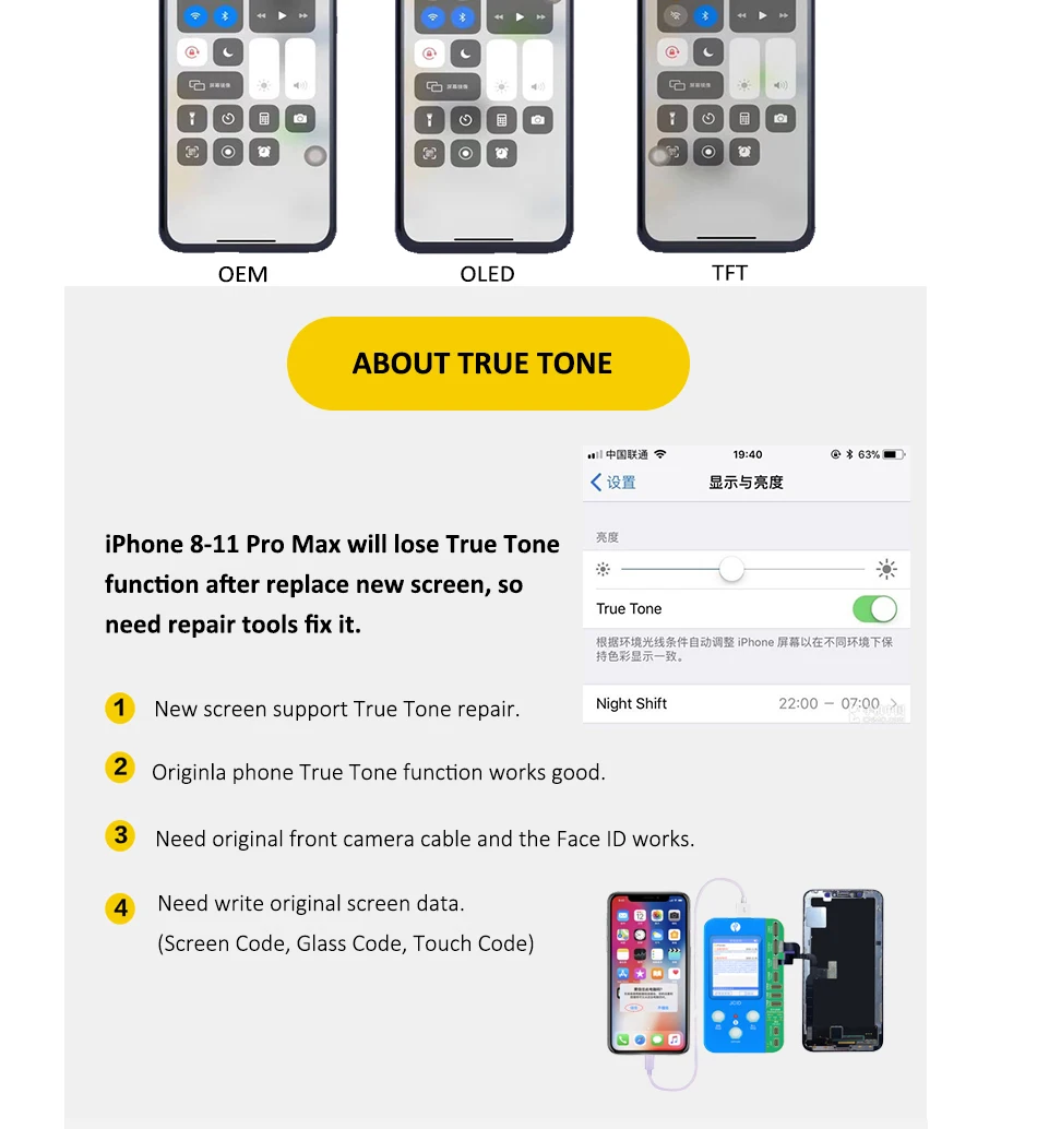 Los tornillos tienen diferentes longitudes, no se estropea; La luz de fondo es frágil, no presione con fuerza la parte posterior de la pantalla, los cables flexibles deben conectarse firmemente.