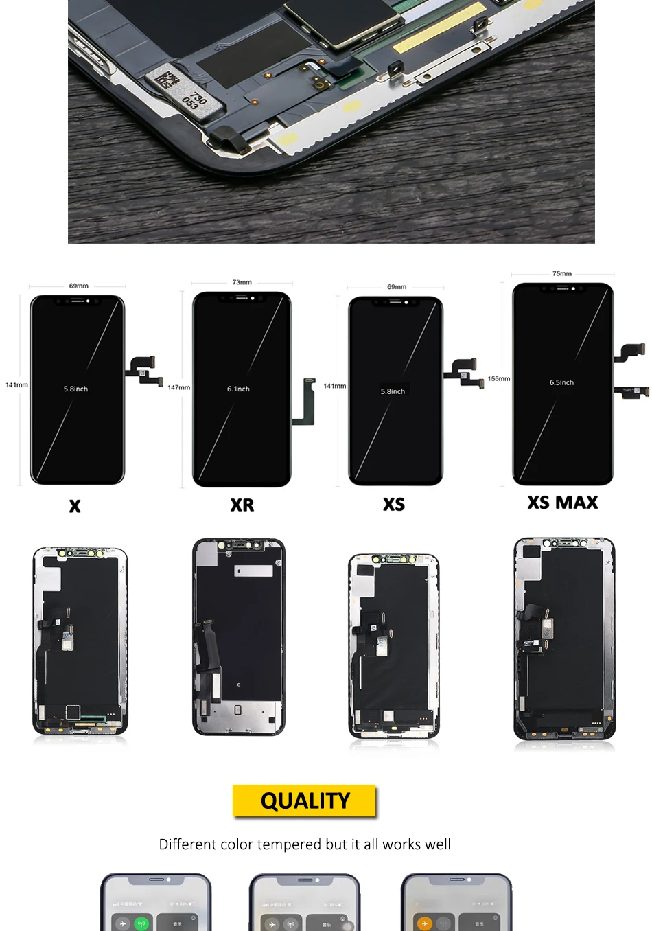 1, reemplazo de pantalla táctil LCD sin píxeles muertos de grado AAA sin puntos.