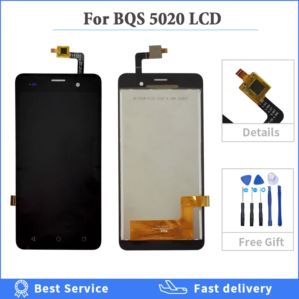 Pantalla LCD de alta calidad 100% probada para BQ 5020 BQS, pantalla LCD Strike con montaje de digitalizador con pantalla táctil con herramientas