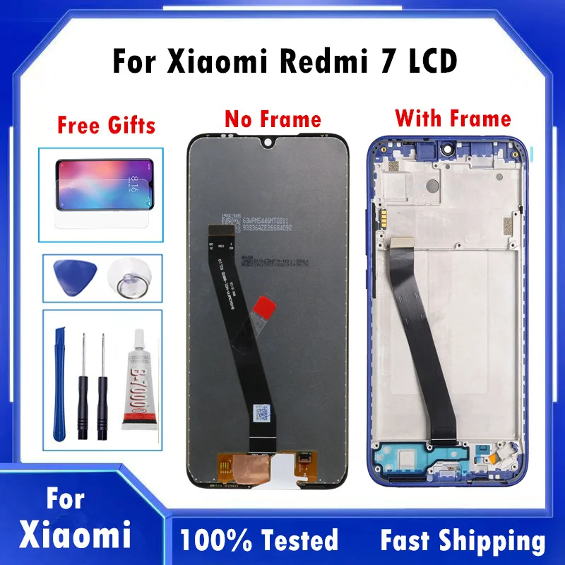 Pantalla LCD AMOLED probada para Xiaomi Redmi 7, montaje de digitalizador de pantalla táctil con marco para Redmi7, repuesto de pantalla LCD