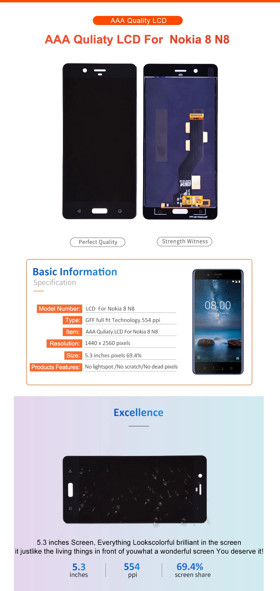 1. LCD de calidad AAA para Nokia N8