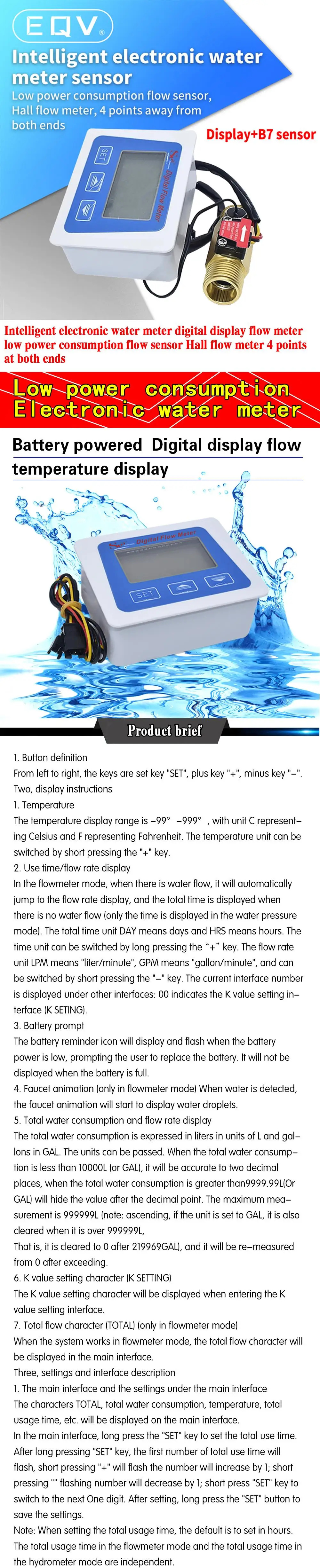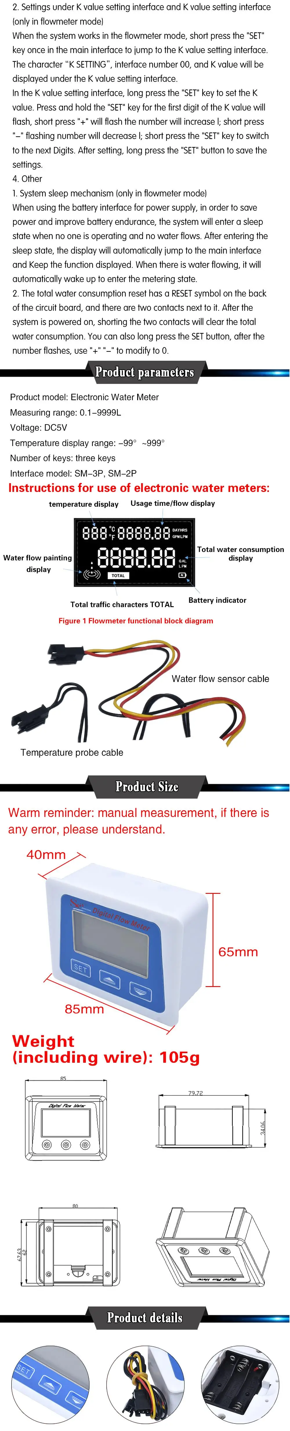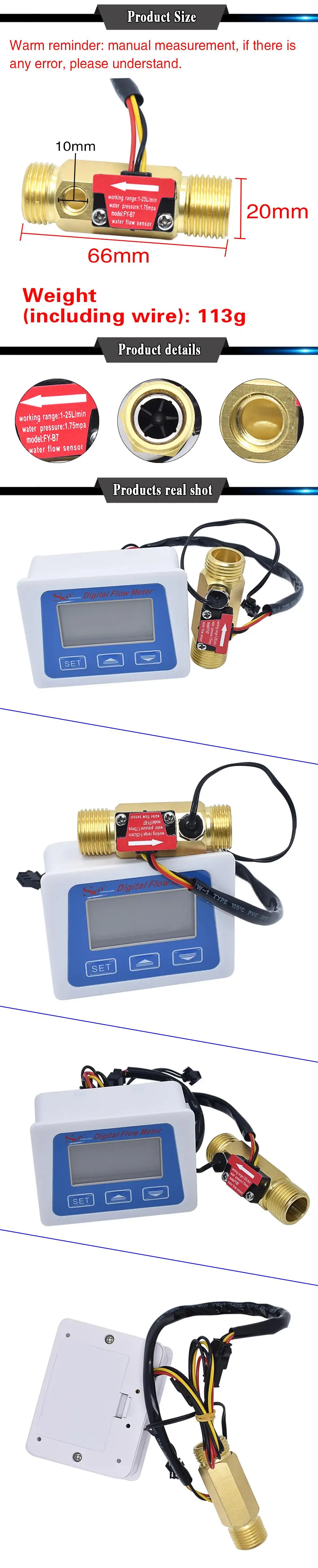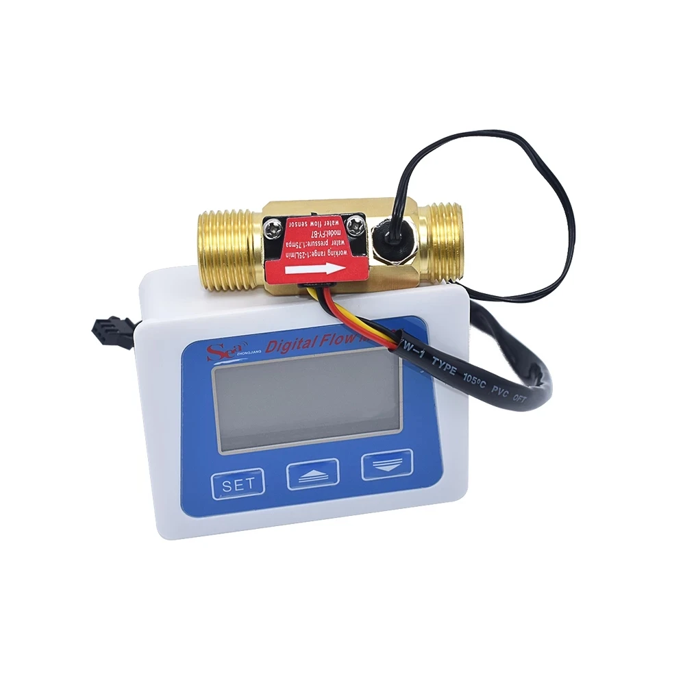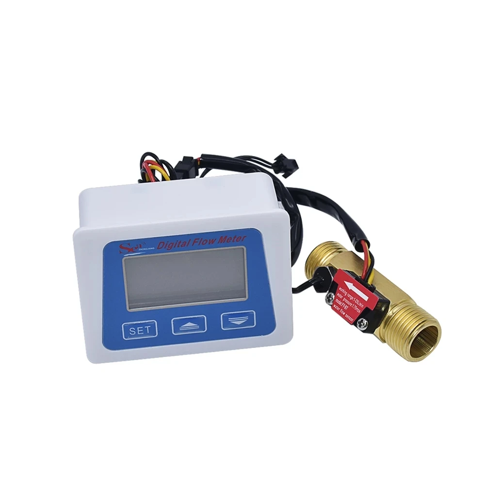 Comprar Pantalla LCD Digital sensor de flujo de agua medidor de flujo totómetro registro de tiempo de temperatura con sensor de flujo G1/2