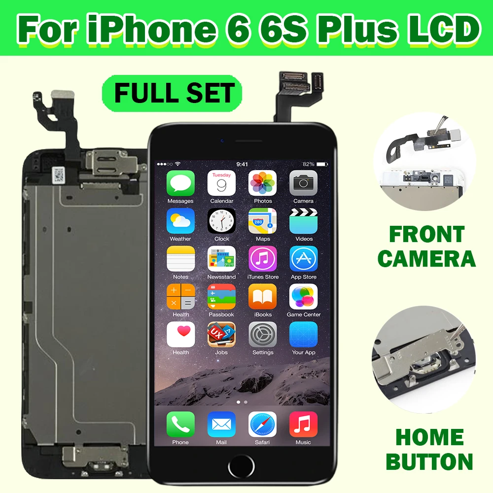 Comprar Pantalla LCD para iPhone 6, 6S Plus, 6P, 6SP, conjunto completo de repuesto, montaje de digitalizador táctil completo, cámara frontal y botón de inicio