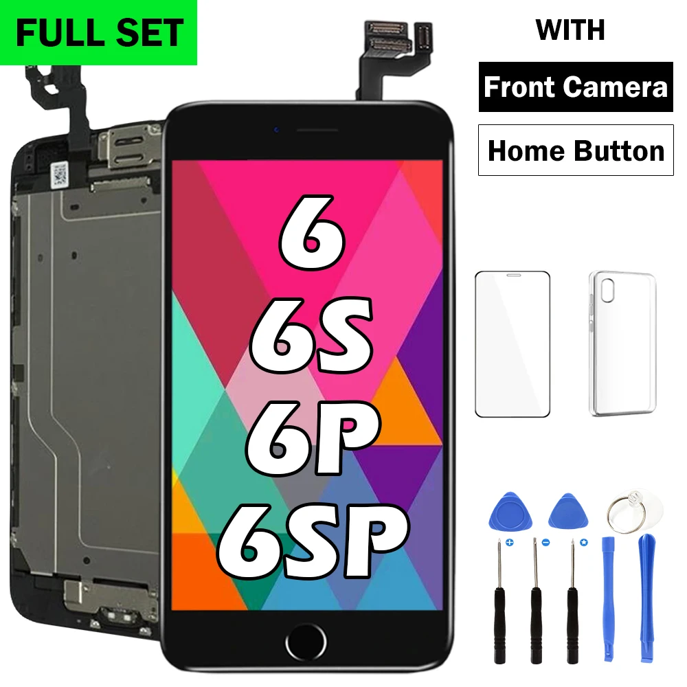 Pantalla LCD para iPhone 6 6S Plus 6P 6SP, juego completo de digitalizador táctil de repuesto, montaje completo + cámara frontal + botón de inicio