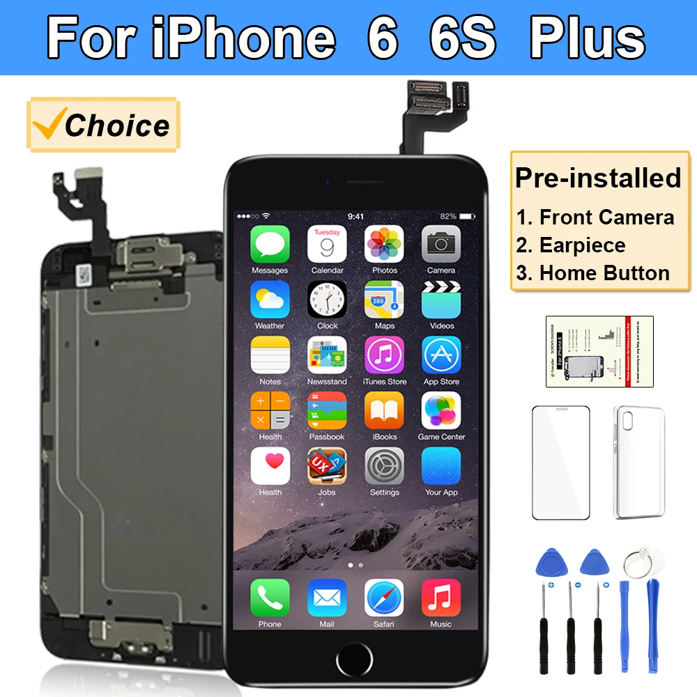 Pantalla LCD para iPhone 6 6S Plus 6P 6SP, digitalizador táctil, conjunto completo de montaje, reemplazo completo + cámara frontal + botón de inicio