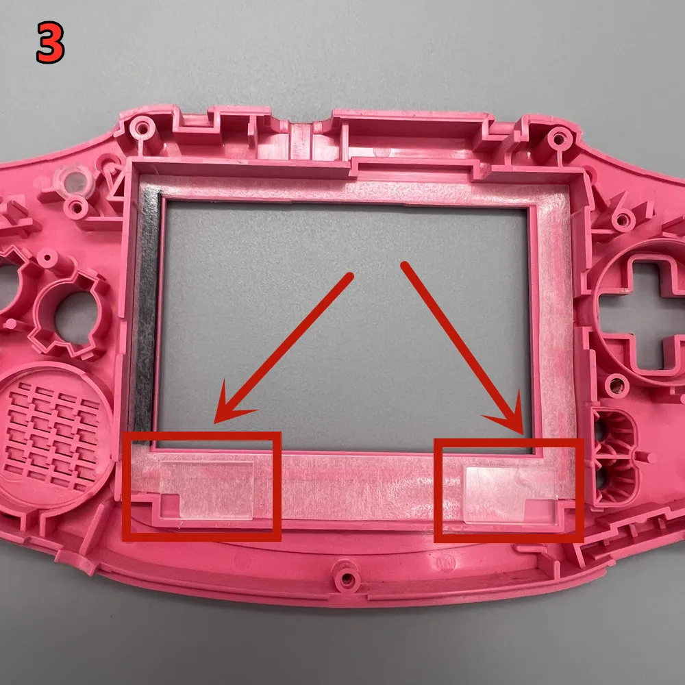 Coloque la cinta adhesiva de doble cara y el bloque de tope LCD en su lugar.El bloque de límite LCD se coloca en los dos lados inferiores de la carcasa.