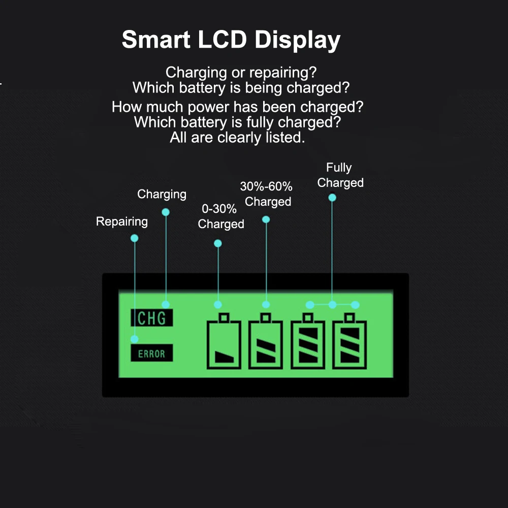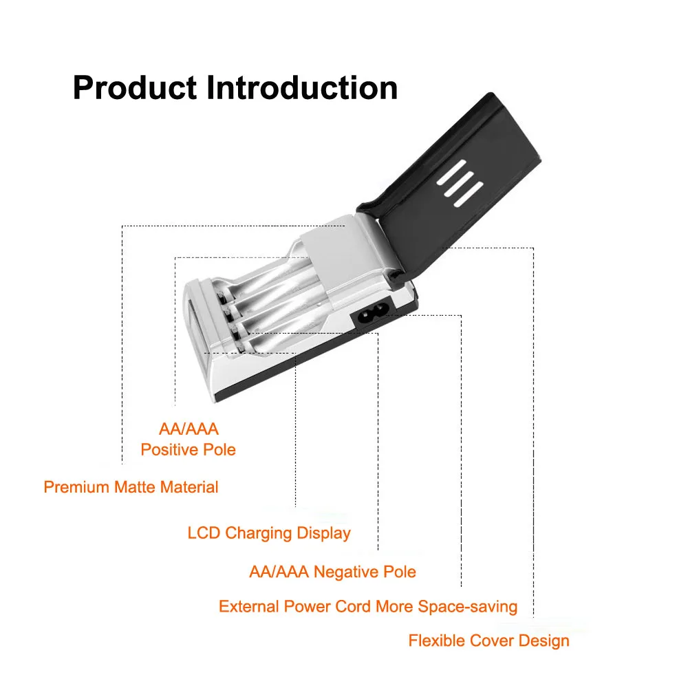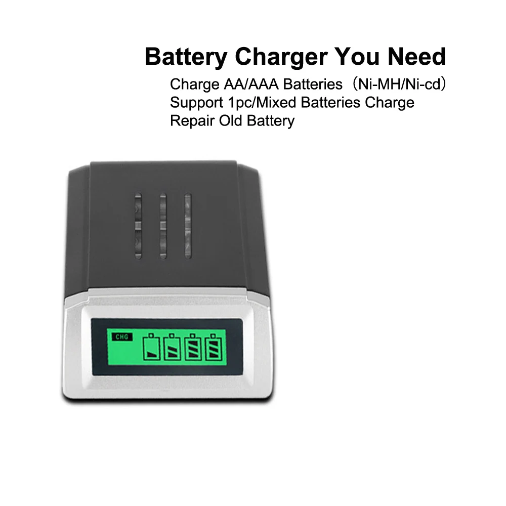 Pantalla LCD-002 con cargador de batería inteligente inteligente de 4 ranuras para baterías recargables AA/AAA NiCd NiMh