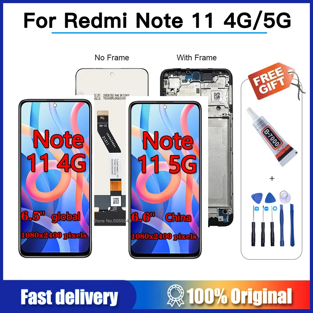Comprar Pantalla LCD para móvil, digitalizador de Panel táctil para Xiaomi Redmi Note 11, 5G, 21091116AC, 100% probada, 2201117TG