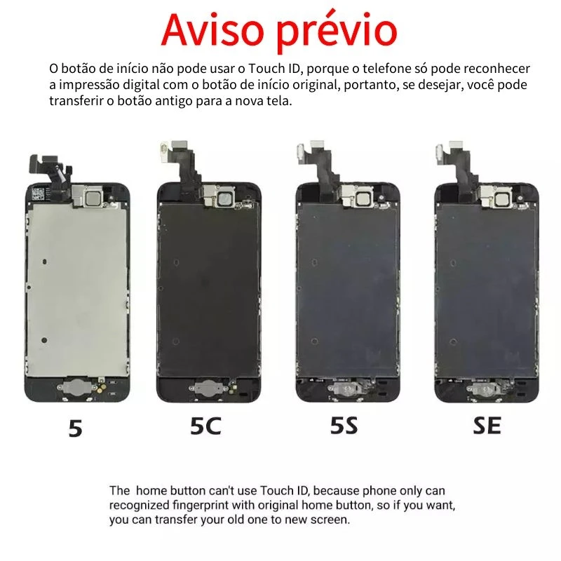 La pantalla de montaje completo no tendrá ID táctil, porque su teléfono solo puede reconocer el botón de inicio original, por lo que puede transferir su botón de inicio original a la nueva pantalla, entonces estará bien, no aceptamos reembolso o devolución debido a huellas dactilares.