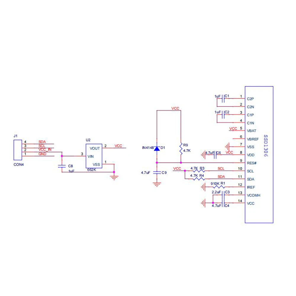 R: Pantalla LCD OLED monocromática de 0,69 pulgadas, pantalla de resolución de 3,3 V 96*16, chip de control SSD1306 Interfaz SPI/IIC Pantalla blanca monocromática de 14 pines*1