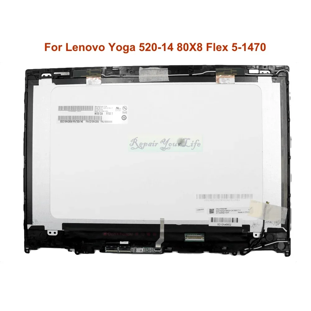 Conjunto de digitalizador táctil de pantalla LCD para ordenador portátil de 14", para Lenovo Yoga 520-14 80X8 Flex 5-1470 520-14IKB 5D10N45603 5D10N45602, marco