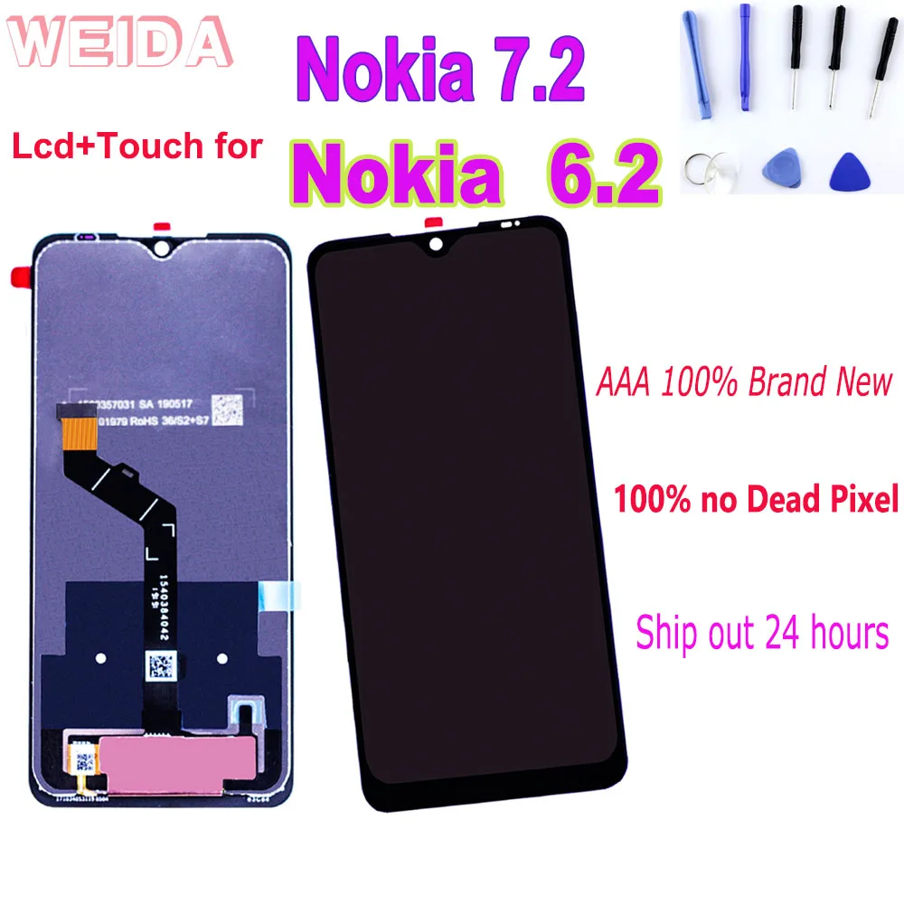 Comprar Pantalla LCD Original de 6,3 "para Nokia 7,2, Nokia 6,2 TA-1198 TA-1200 TA-1196, marco de montaje de digitalizador con pantalla táctil, herramientas gratuitas