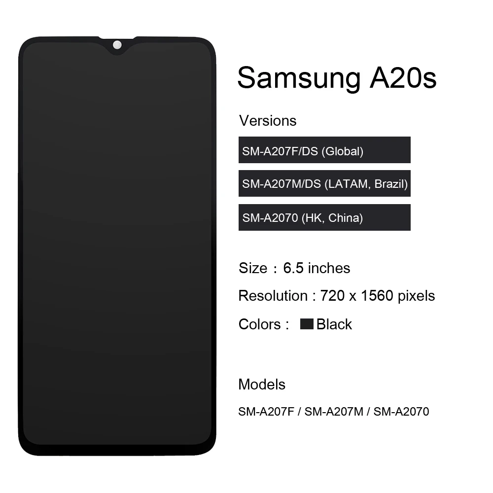 Comprar Pantalla LCD Original para Samsung Galaxy A20s, A207, A2070, SM-A207F, montaje digitalizador de repuesto con regalos, 6,5 ", AAA ++