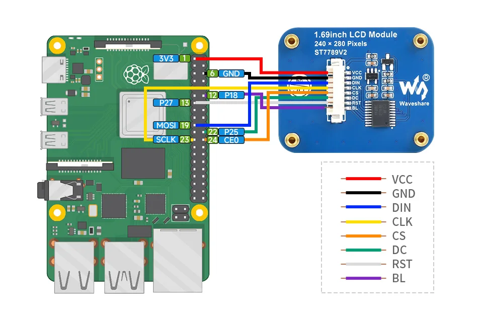 Módulo de pantalla LCD de 1,69 pulgadas, resolución 240×280, interfaz SPI, IPS, 262 colores