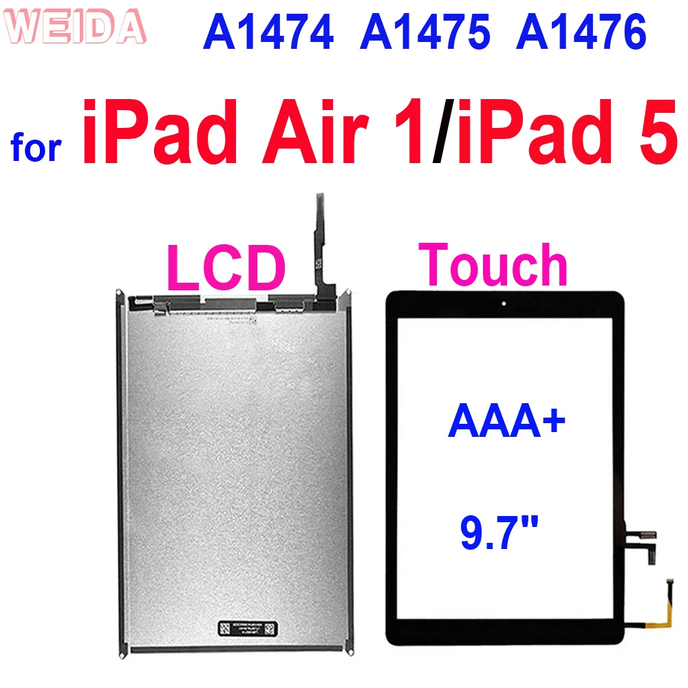 AAA + 9,7 "iPad 5 LCD para iPad Air 1 LCD A1474 A1475 A1476 Pantalla LCD Digitalizador de pantalla táctil para iPad Air iPad5 LCD Reemplazo