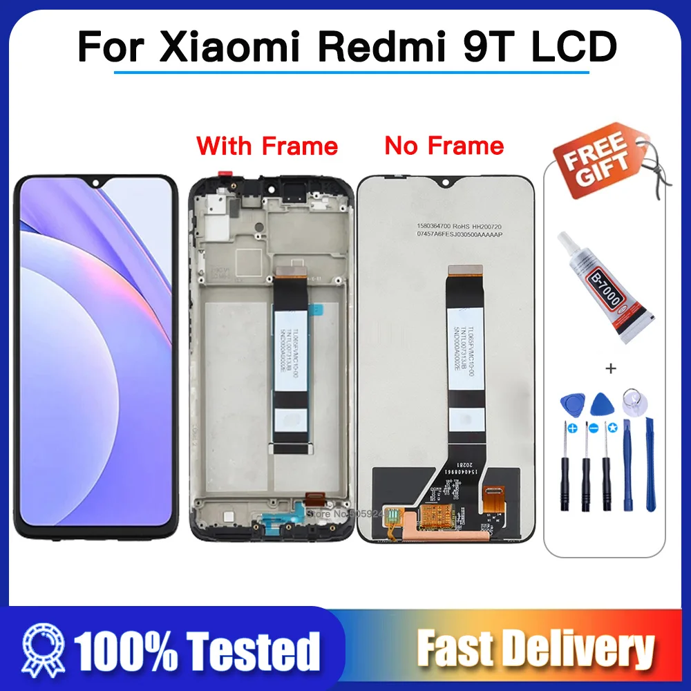 100% probado Original 6,53 "para Xiaomi Redmi 9T LCD pantalla táctil digitalizador montaje con marco J19S M2010J19SG M2010J19SY