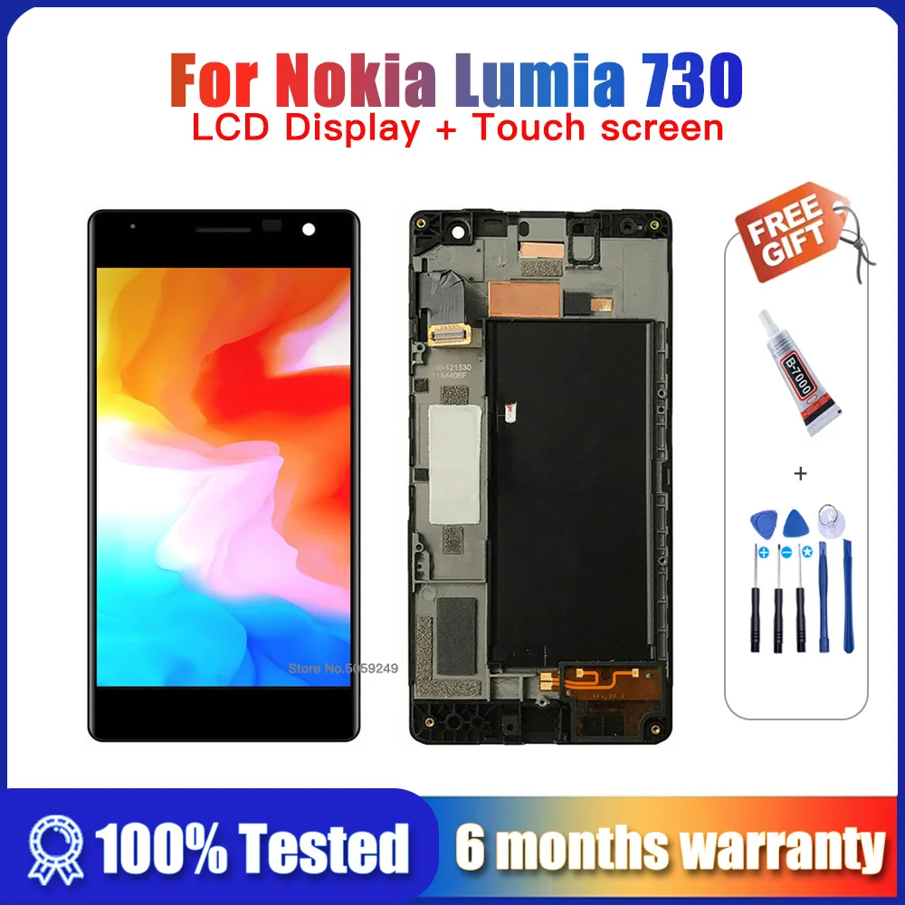 Prueba de 100% para Nokia Lumia 730 735, pantalla LCD con pantalla LCD de reemplazo de marco, montaje de digitalizador táctil con reemplazo de Marco