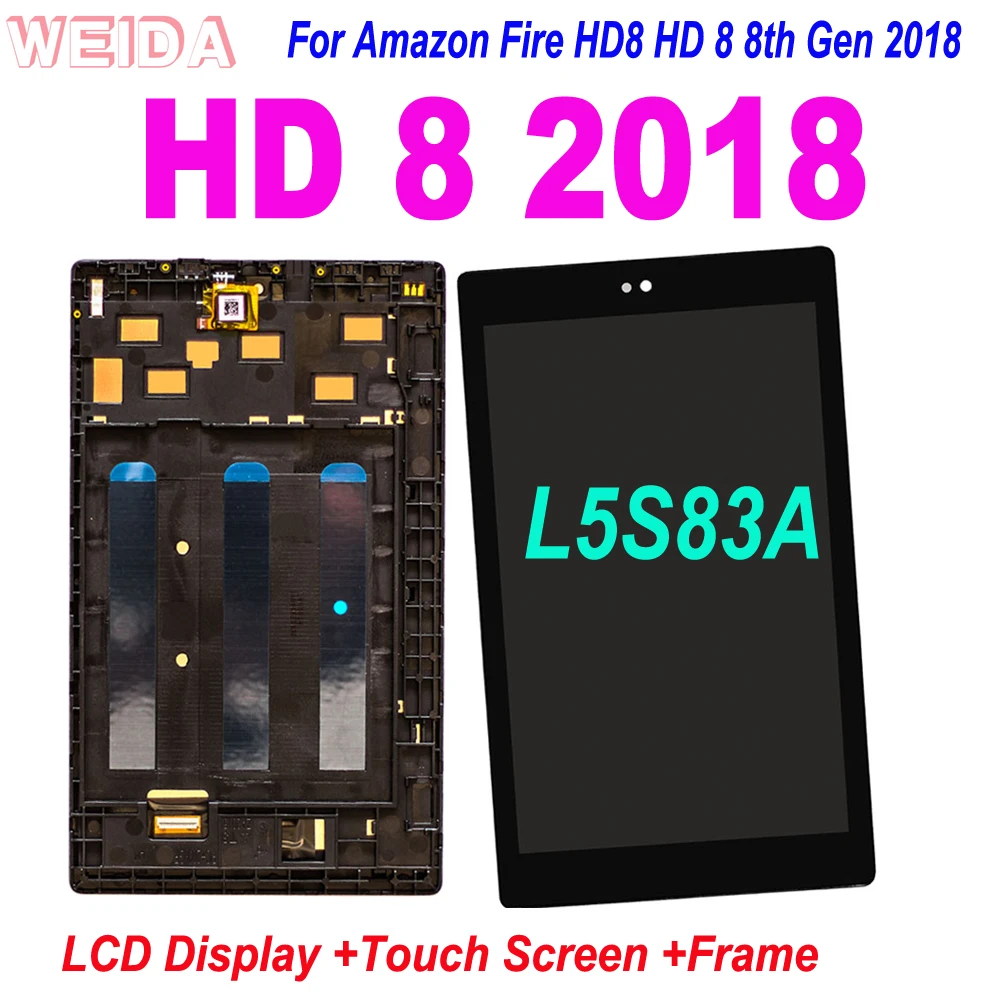 Comprar Pantalla LCD táctil de 8,0 pulgadas para teléfono móvil, montaje de digitalizador con marco para Amazon Fire HD 8 8th, 2018, L5S83A, 2018