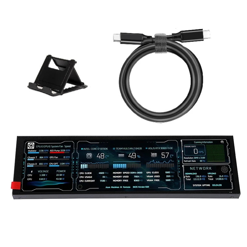 Comprar Pantalla LCD de tira larga de 8,8 pulgadas, Monitor secundario USB tipo C AIDA64, subpantalla, CPU, GPU, SSD, información, 1920x480