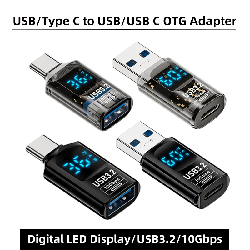 Comprar Pantalla LED Digital de 36W y 60W, adaptador USB a USB C OTG tipo C a USB 3,2, transferencia de datos, convertidor de carga rápida, medidor de potencia