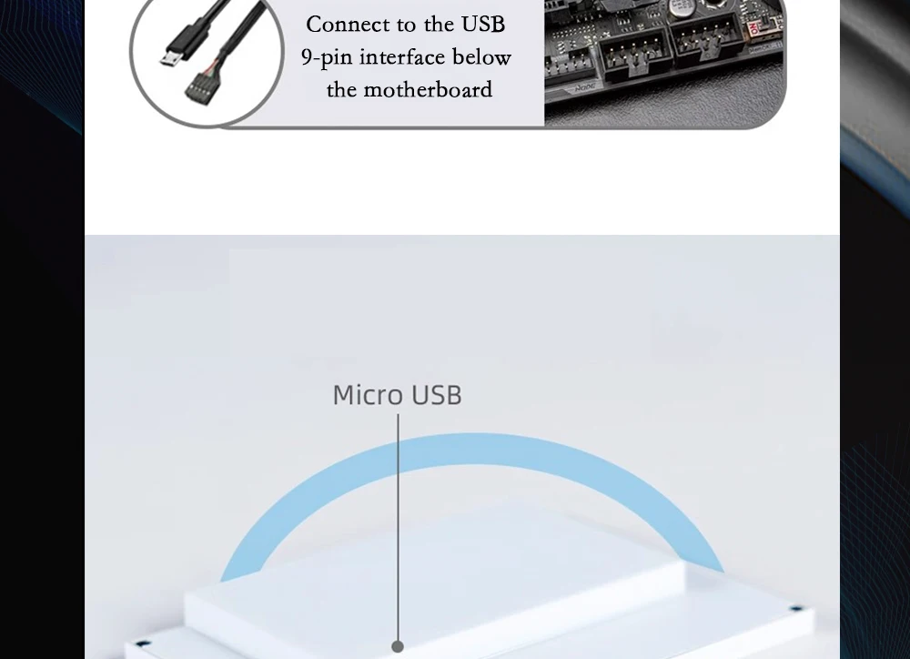 2.Conéctese a la interfaz USB de 9 pines debajo de la placa base