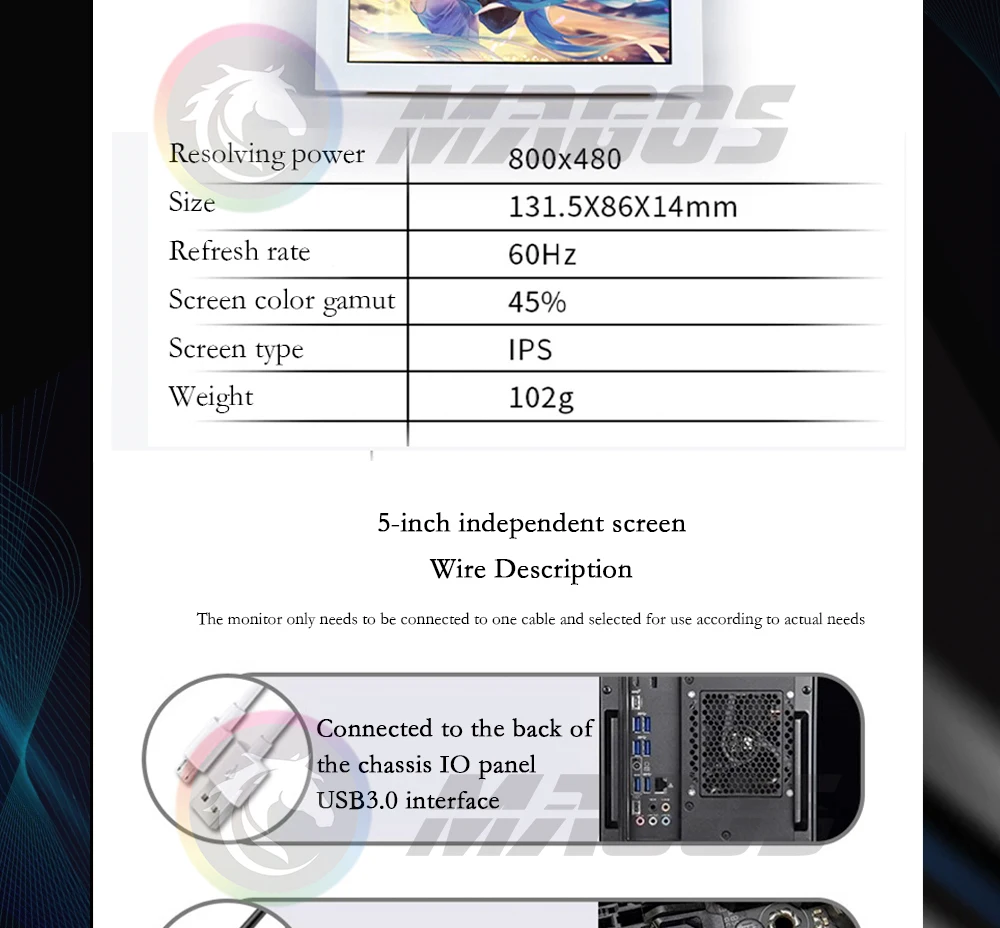 Comprar Pantalla de Monitor de PC de 5 pulgadas IPS único USB tipo C pantalla independiente escritorio dinámico/vídeo monitoreo de computadora DIY AIDA64