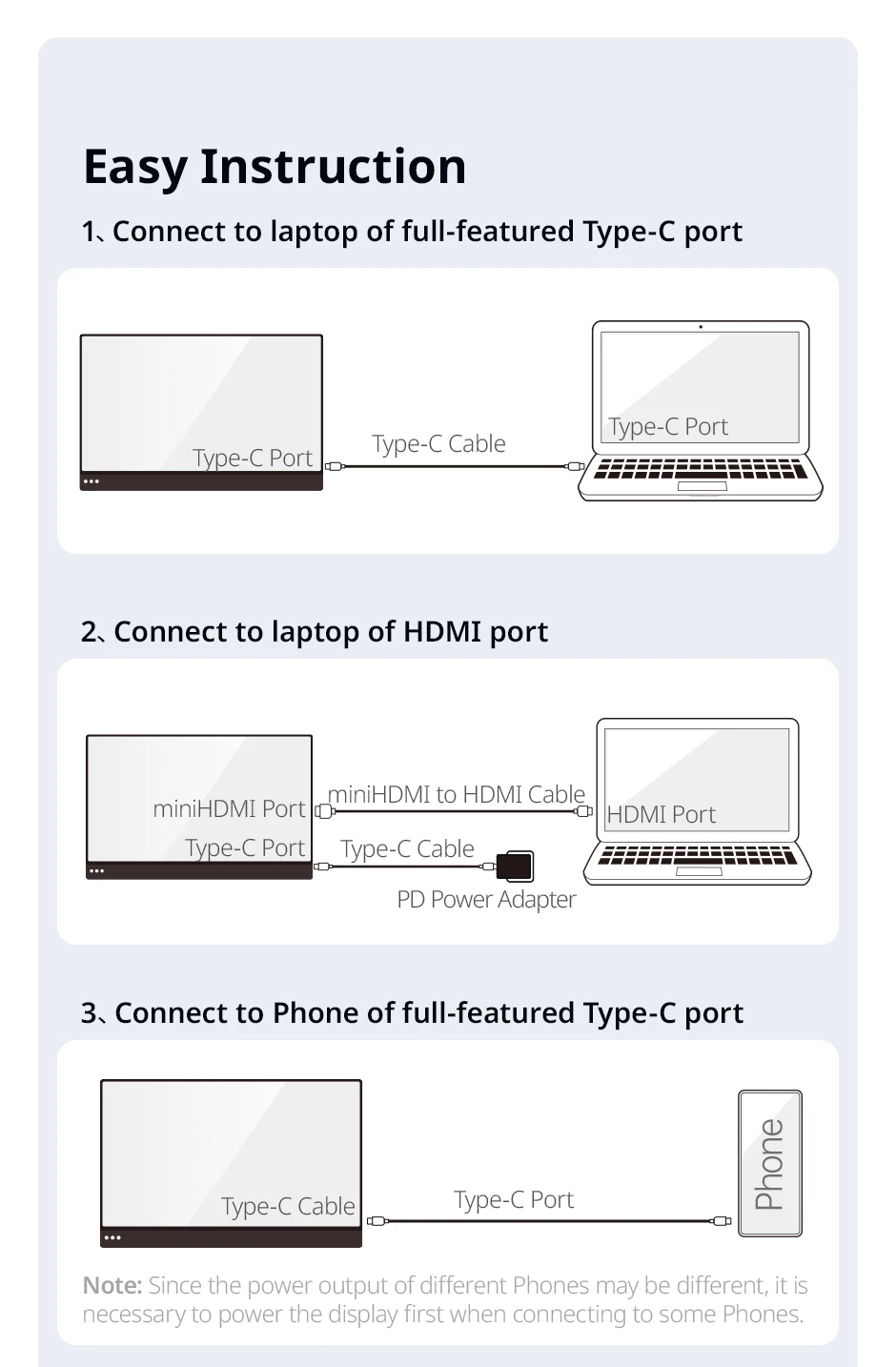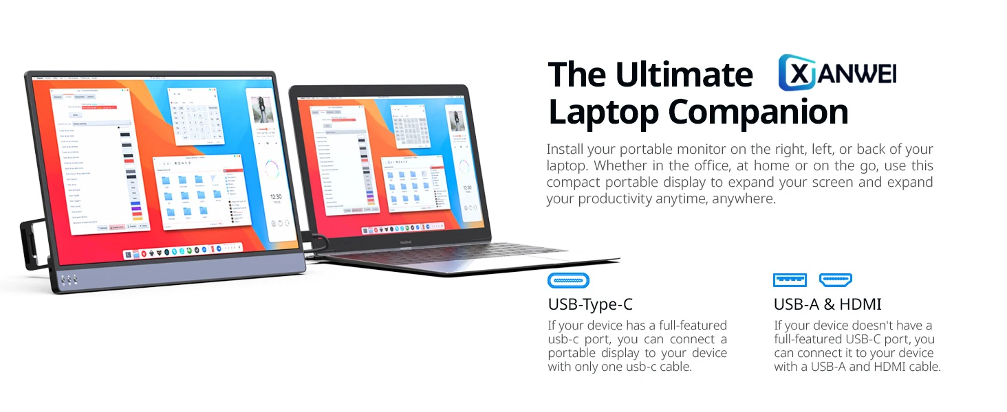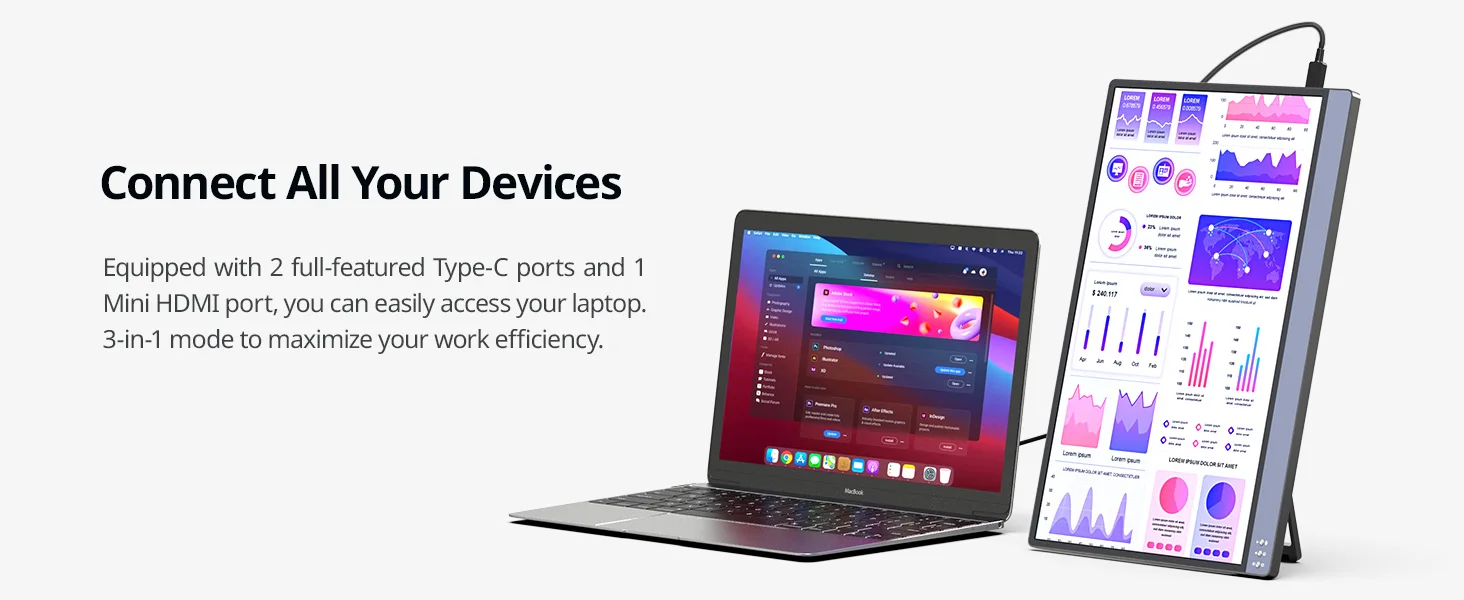 ▪[Fácil de conectar a través de un cable o HDMI]Puede conectar el monitor con su computadora portátil a través de un cable de USB-C si su computadora portátil tiene puertos de función completa, si no, conéctese al monitor con nuestro cable Mini HDMI