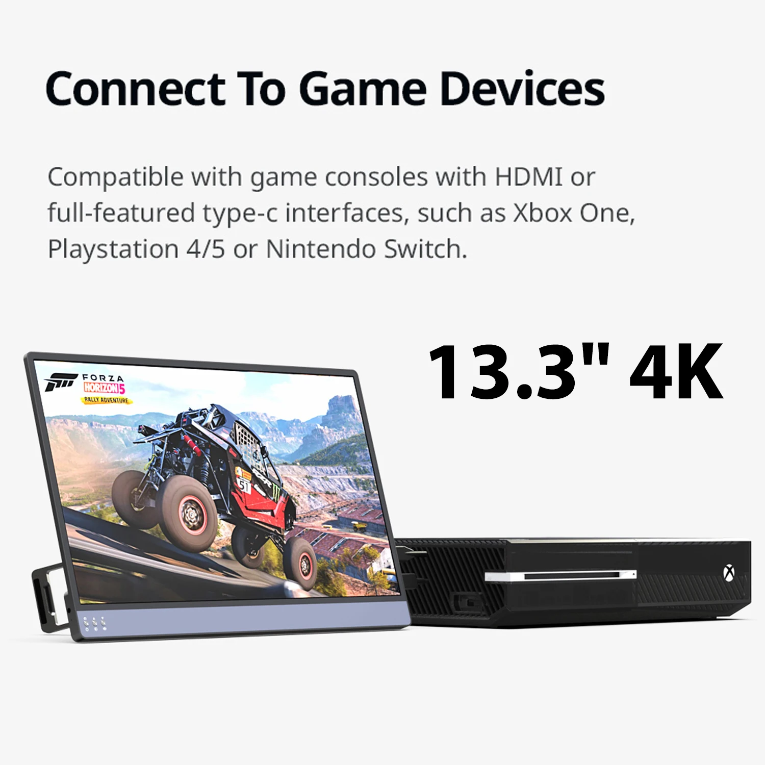 Comprar Pantalla de Monitor portátil para oficina, pantalla de 13,3 pulgadas, 4K, USB tipo C, con soporte plegable, interruptor para ordenador portátil, PS5/4, Xbox, Macbook, Mini PC