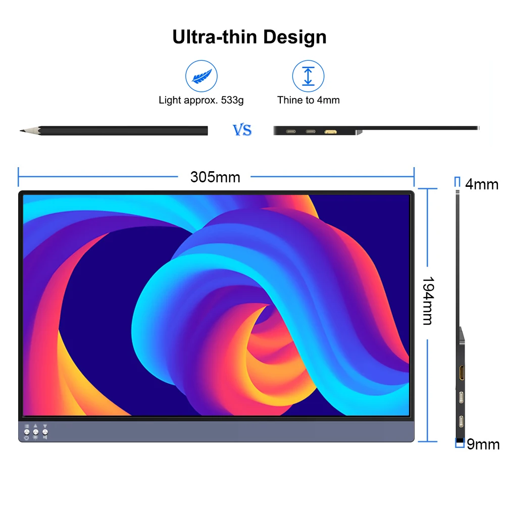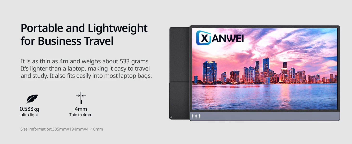 ▪[Fácil de llevar]Monitor portátil ultrafino y ligero (alrededor de 533g), fácil de llevar cuando viaja o sale a trabajar.